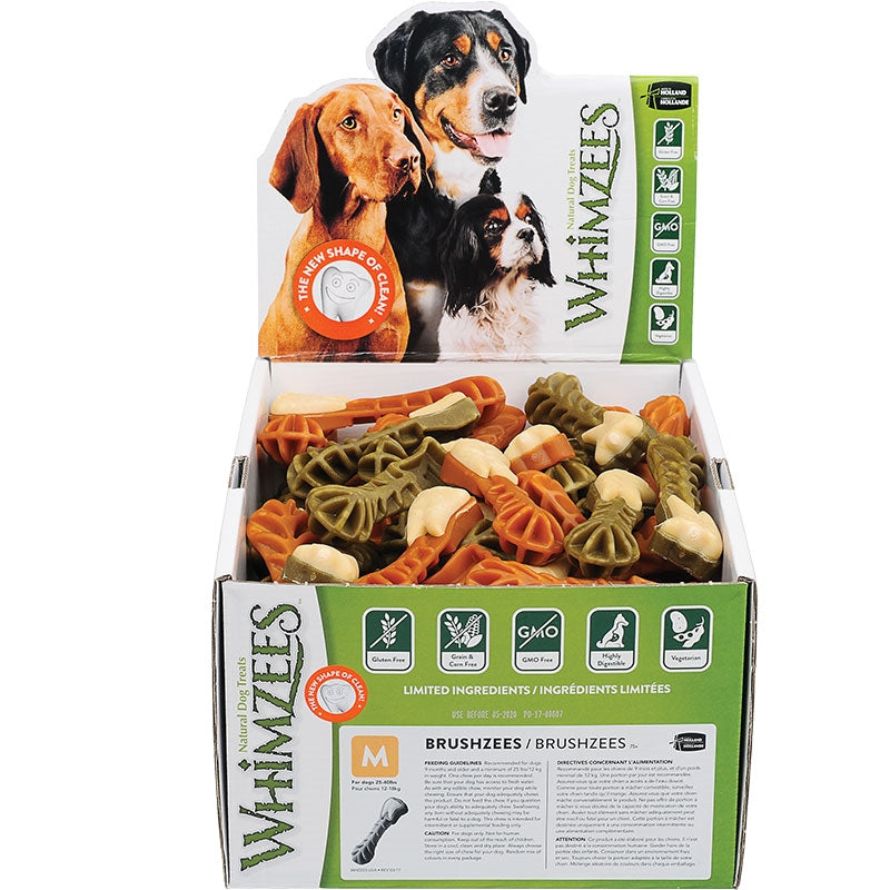 WHIMZEES natural dental chews for dogs are a favorite product among pet-parents worldwide, as each whimsical knobby shape of these chews provides support to oral and dental health by stimulating blood flow to a dogs teeth and gums.